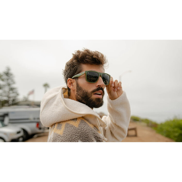 When duty or nature requires your presence, it’s time to pop on your Coyote Calls Torrey Pines sunglasses. The glossy army green exterior may fool some into brushing them off as a basic pair, but the amber interiors invite curious parties to consider alternate theories. Olive ‘K’ detailing complements those transparent accents easily, while polarized aviator green lenses offer solid UV400 protection and impact resistance to boot. Not every pair of polarized shades can look this good, so make sure you show them off accordingly.