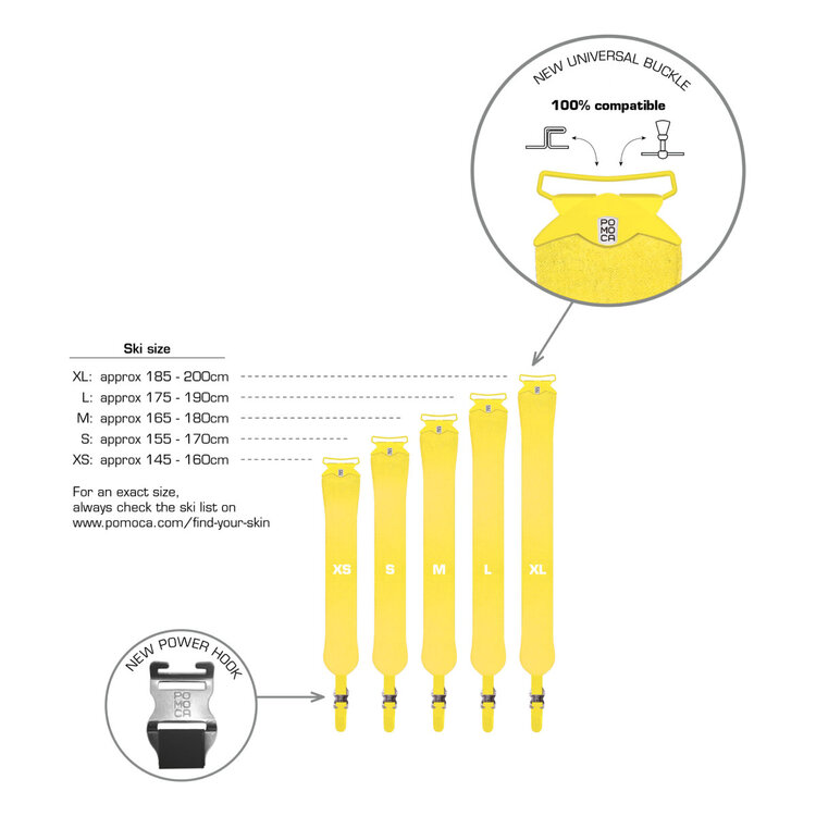 The POMOCA R&D department works hard to make your life easier. Preparing a self-adhesive skin for skis can take a long time and requires specific knowledge. POMOCA has developped the new universal, light, and easy-to-apply ready2climb set. The ready2climb skin can be cut to a specific ski in just two minutes without any special tools. The adjustable loop can be fixed to any type of ski. For this system, POMOCA offers a complete list of skis on the market, so you can find the self-adhesive skin best suited to your needs.
