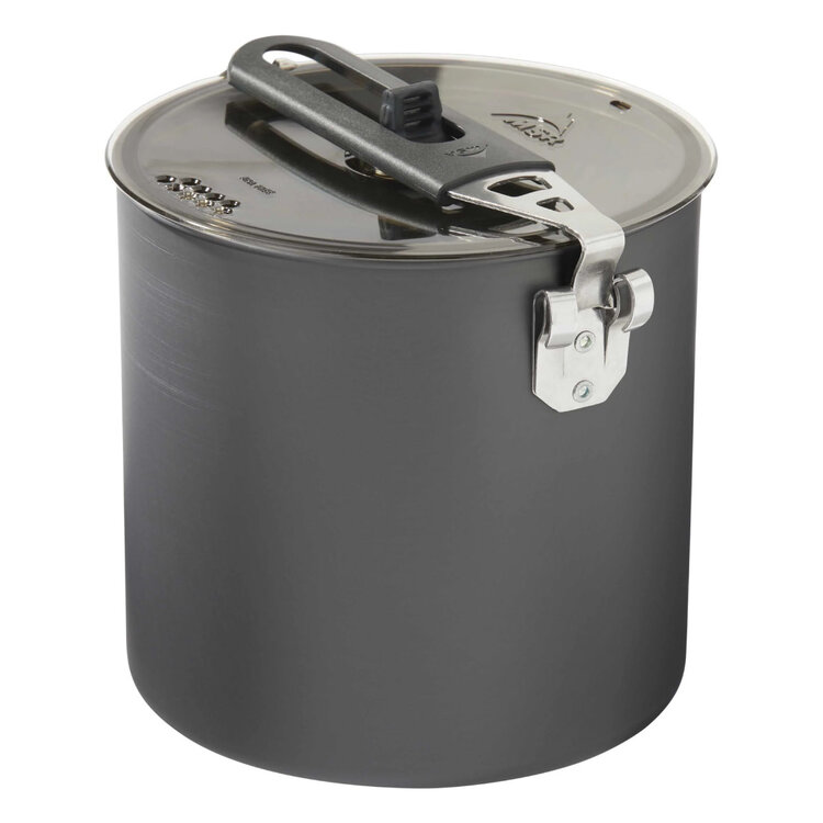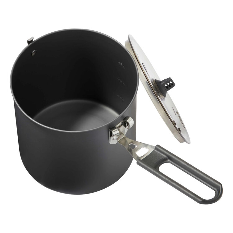 The Trail Lite 2 Liter pot delivers the lightweight performance of aluminum with the strength of a hard-anodized finish, making it the foundation of a cook kit that will last. With capacity for 2 backpackers, the taller design helps save space in smaller packs. An excellent water-boiler for simple backcountry meals, this pot features room for mugs and utensils or a small stove, and a folding/locking handle to keep it all in place.