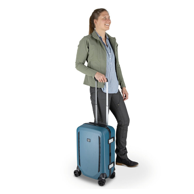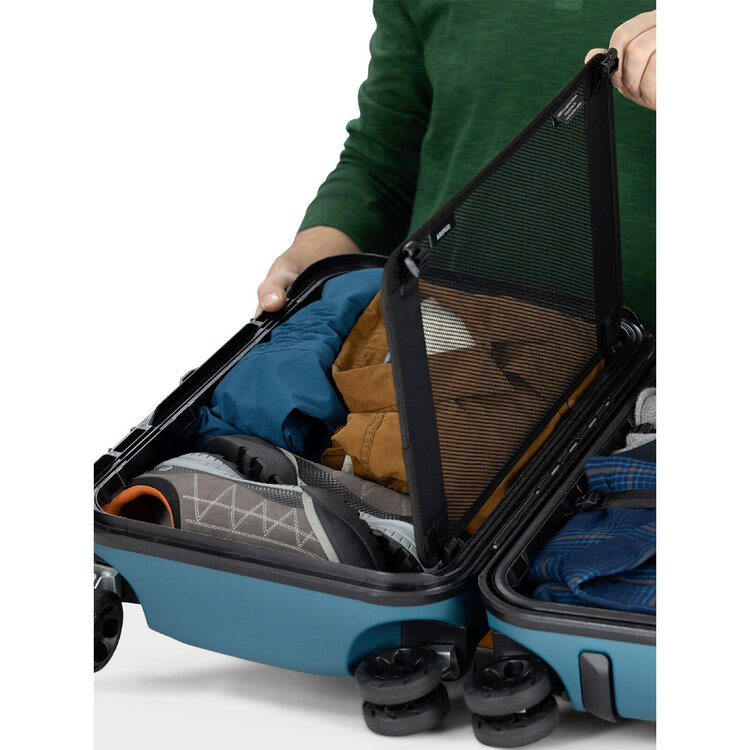 Lightweight, weatherproof and able to withstand the rigors of airline travel, Osprey's premium Hardside series was designed with the same attention to detail as the rest of their travel gear and built with durability top of mind. The Transporter™ 4-Wheel Hardside Carry-On 22"/40L is sized to fit most major airlines' overhead bin requirements. The tough outer shell is sustainably crafted from 80-percent post-consumer recycled polycarbonate. A gasketed frame closure offers maximum weather protection and oversized wheels roll smoothly over uneven surfaces.