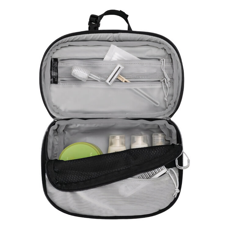 Your go-to kit for morning gym sessions and weekend getaways, the Transporter Hanging Toiletry Kit stays out of the way and secures bathroom essentials with four zippered compartments and two stretch mesh pockets. Durable, water-resistant NanoTough™ fabric cleans easily and contains spills so you can focus on getting ready for whatever the day brings.