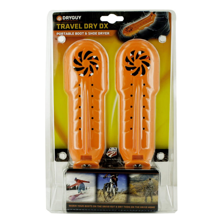 The Travel Dry DX is the ideal portable shoe and boot dryer for your all-season adventures. Easily fitting into most footwear types, the compact design can be powered through your vehicle outlet, making it a must-have travel accessory for every outdoor trip. The Travel Dry DX works in a few simple steps. First, the dryer draws fresh air inside your shoe. Once inside, the heating elements warm the fresh air, helping it to circulate throughout the inside of your shoe. This warm air sucks up trapped moisture and escapes through the top of the shoe, taking the moisture with it. So wherever you go, go with the Travel Dry DX. Your feet will thank you.