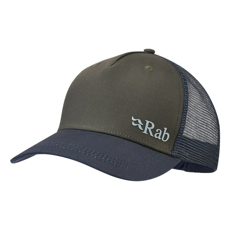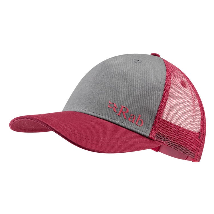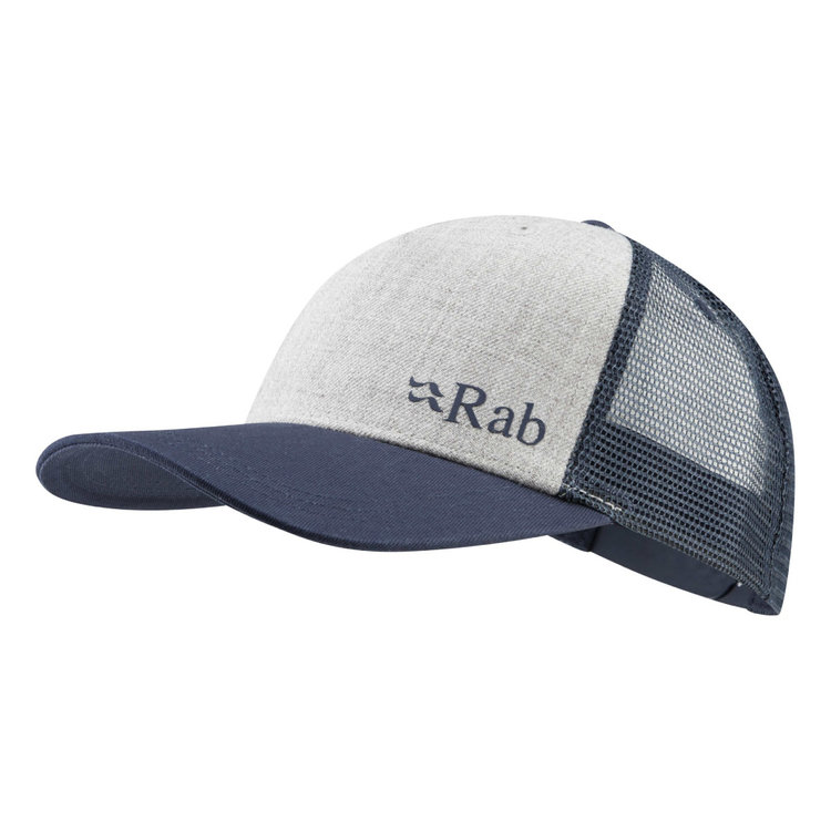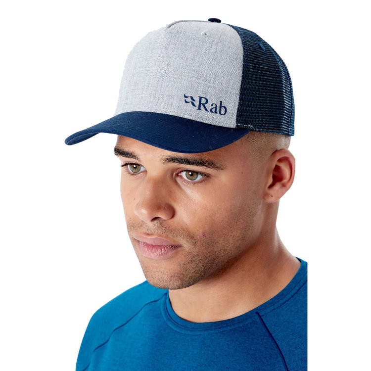 In addition to its cool, understated style and modest Rab logo, it uses a prominent, upright one-piece crown in textured polyester with contrasting peak, ventilated mesh panels and a simple snapback adjustment.