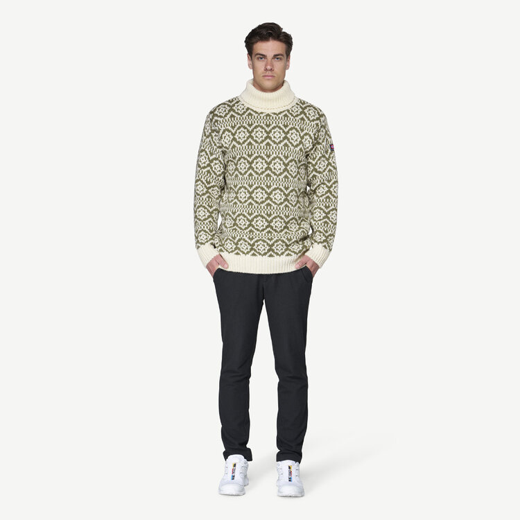 Devold Hoddevik is a chunky wool sweater revived from Devold's archives. Like other knitted garments in the Originals collection, the Hoddevik keeps you exceptionally warm in all weather conditions. This thick knit sweater is not only a work of craftsmanship but was once a necessity for those working in harsh conditions along the Norwegian coast. The high-neck, insulating sweater blends history with sustainable Norwegian wool—and is made to last for generations.