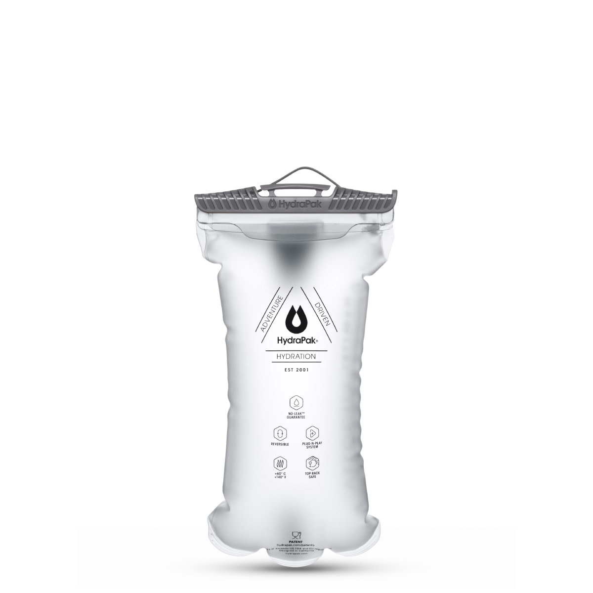 The Velocity™ is HydraPak's lightest reservoir series. Balanced and comfortable, there’s a size to fit any adventure - hike, bike or run. The minimalist design and ultralight materials shed weight, the Comet™ bite valve delivers flow, and the wide opening makes adding ice easy. Their Plug-N-Play™ connector quickly separates the tank from tube for filling and cleaning.