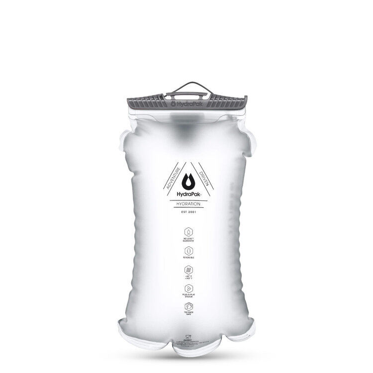 The Velocity™ is HydraPak's lightest reservoir series. Balanced and comfortable, there’s a size to fit any adventure - hike, bike or run. The minimalist design and ultralight materials shed weight, the Comet™ bite valve delivers flow, and the wide opening makes adding ice easy. Their Plug-N-Play™ connector quickly separates the tank from tube for filling and cleaning.