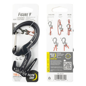The innovative patented Figure 9 is a carabiner rope tightener that tightens, tensions, and secures cords and ropes without using knots. The result is a hassle-free alternative to tying and untying difficult knots and having ropes quickly lose tension.