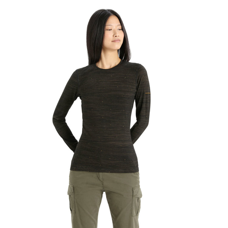 The benchmark against which all others are judged, the 200 Oasis Long Sleeve Crewe Ski Stripes features Icebreaker's most versatile merino jersey fabric for year-round layering performance across any activity. The all-over graphic print draws inspiration from the artistic imprint of ski tracks.