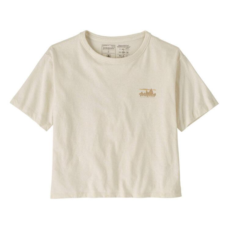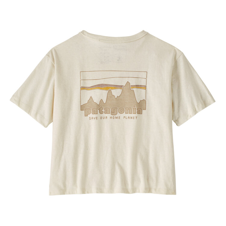 The '73 Skyline graphic inspiration goes back to a label we sewed on Patagonia gear back in the day. We screen-printed the artwork on their Women's '73 Skyline Easy-Cut Responsibili-Tee®, a classic crewneck with a relaxed, boxy design, a slightly longer sleeve length and a straight hem. This T-shirt is built with fabric scraps and recycled bottles, which reduces their reliance on virgin raw materials. Made in a Fair Trade Certified™ factory.