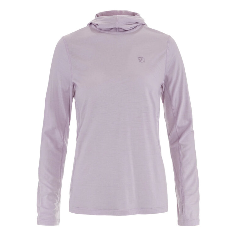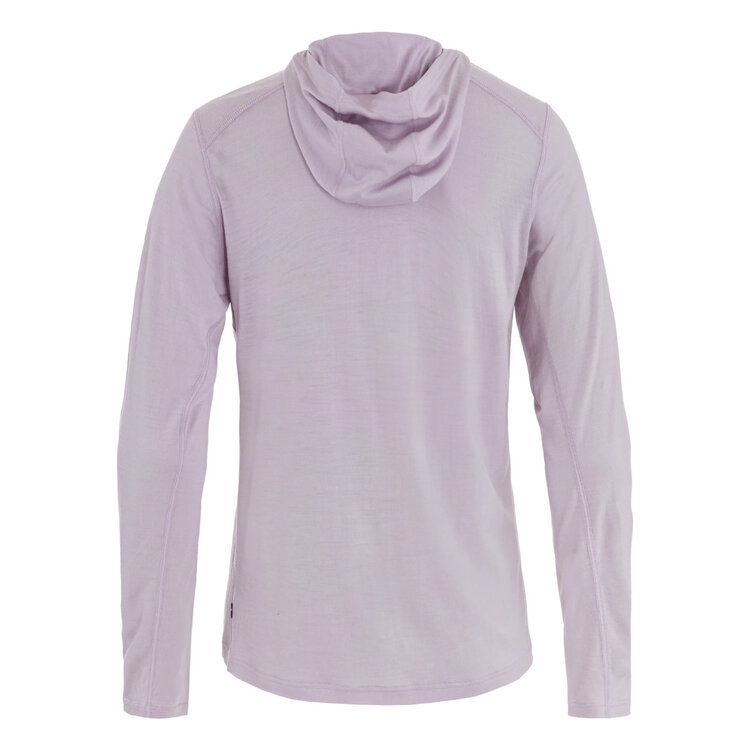Abisko Wool Hoodie for women is a lightweight hoodie in a soft jersey knit made from ZQ merino wool and polyester. A perfect first layer in both warm and cold climates, it combines the temperature-regulating properties of wool with the durability and moisture-wicking properties of synthetic fibres. Its long sleeves have thumbholes to stop them riding up and the hood has an opening for a ponytail. Extra useful on multiday trips as wool naturally resists bad odours.