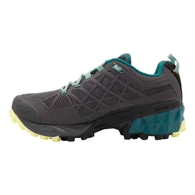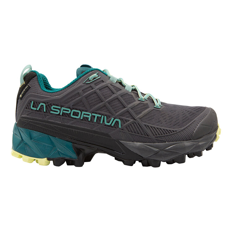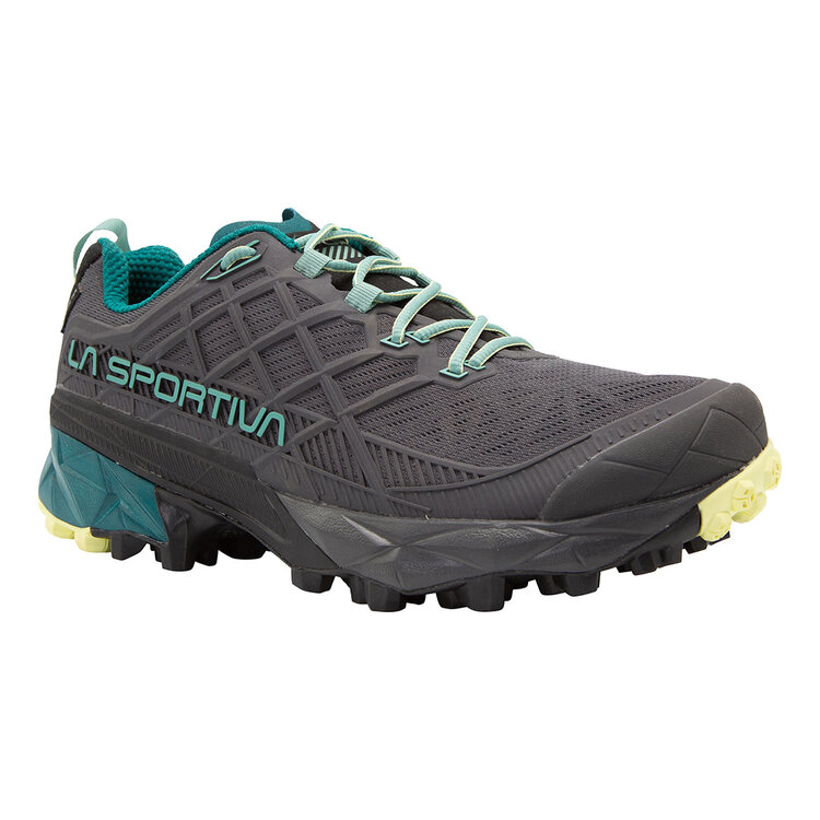 Updated and ready for action, the women's Akyra II GTX is the perfect shoe for those seeking protection and stability while moving quickly on variable terrain in all weather conditions. A 3D Grip upper comfortably secures and protects the foot while the ePE Gore-Tex® Invisible Fit (PFC-Free) membrane protects from the elements. The FriXion® Red outsole provides excellent traction as the Trail Rocker2 system allows for a natural rolling gait mile after mile.