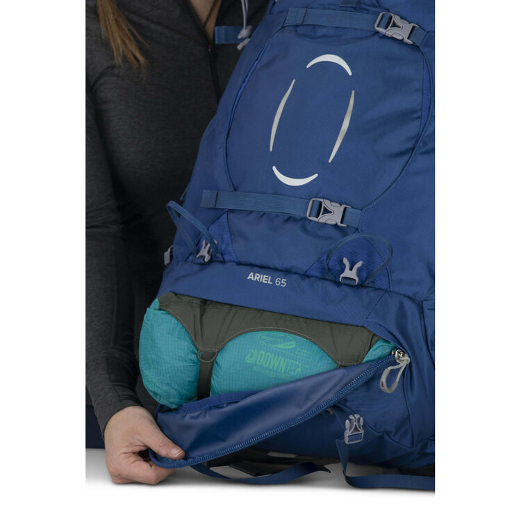 - Zippered sleeping bag compartment with removable divider