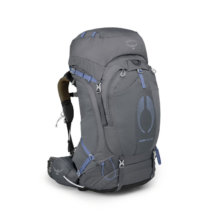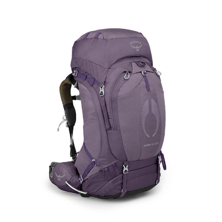 Tackle heavyweight weekends or weeklong backpacking trips with gravity-defying comfort and premium ventilation with the Aura AG 65. Featuring a women's-specific fit, its innovative suspension and harness delivers a seamless fit that envelopes your back and hips in 3D-suspended mesh. From easy-to-use stretch mesh side pockets, Stow-on-the-Go trekking pole attachment and integrated raincover, the Aura AG 65 is a compromise-free women's backpacking pack. Made with recycled main, accent and bottom fabrics.