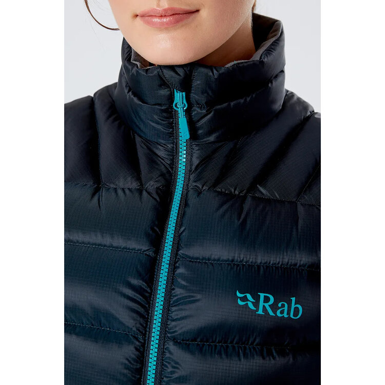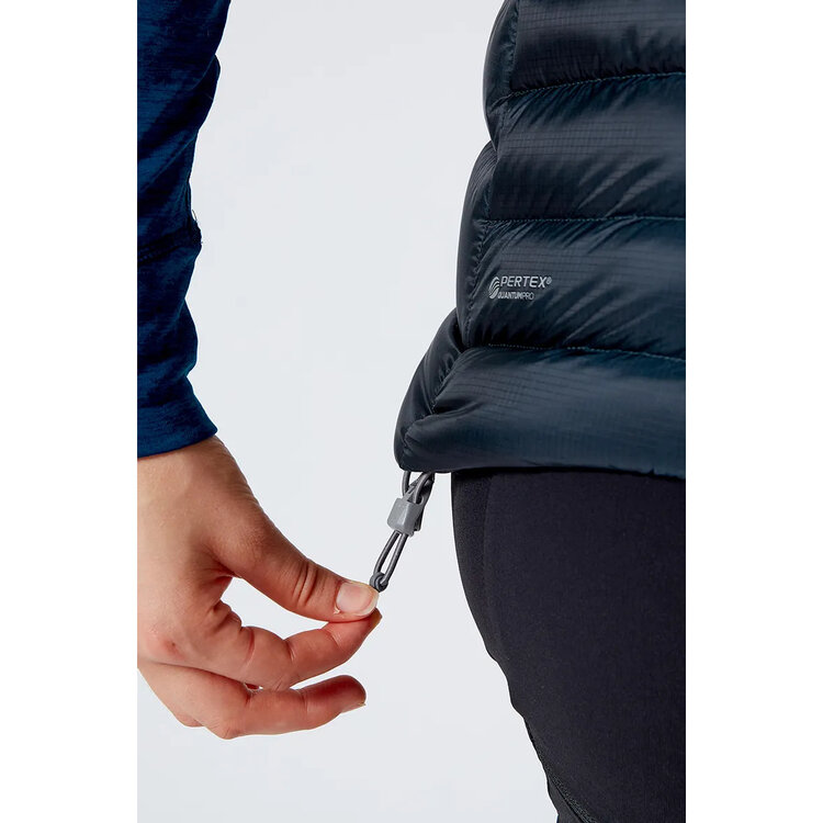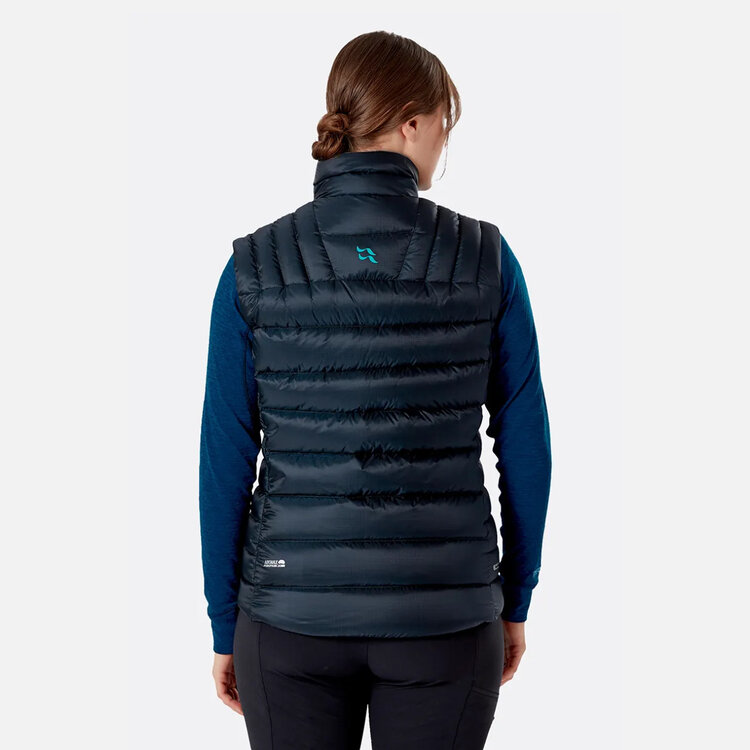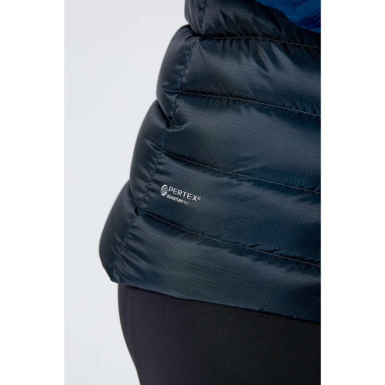 The Women’s Electron Pro Vest is built from 20D Pertex® Quantum Pro ripstop nylon with a DWR coating for improved weather resistance. It uses zoned midi and micro baffle stitch-through construction, alongside ethically-sourced 800FP RDS-certified European goose down with a Nikwax® hydrophobic finish, for outstanding core warmth. Practical mountain features include elasticated easy-stretch armholes, an insulated collar, a zipped internal security pocket and an adjustable hem. They also include a pair of harness-friendly zipped hand pockets and a double-ended full-length YKK® Natulon zip. With its advanced fabrics, high-loft down and modest weight, the Women’s Electron Pro Vest packs into a compact stuff sack for the easiest possible carry.