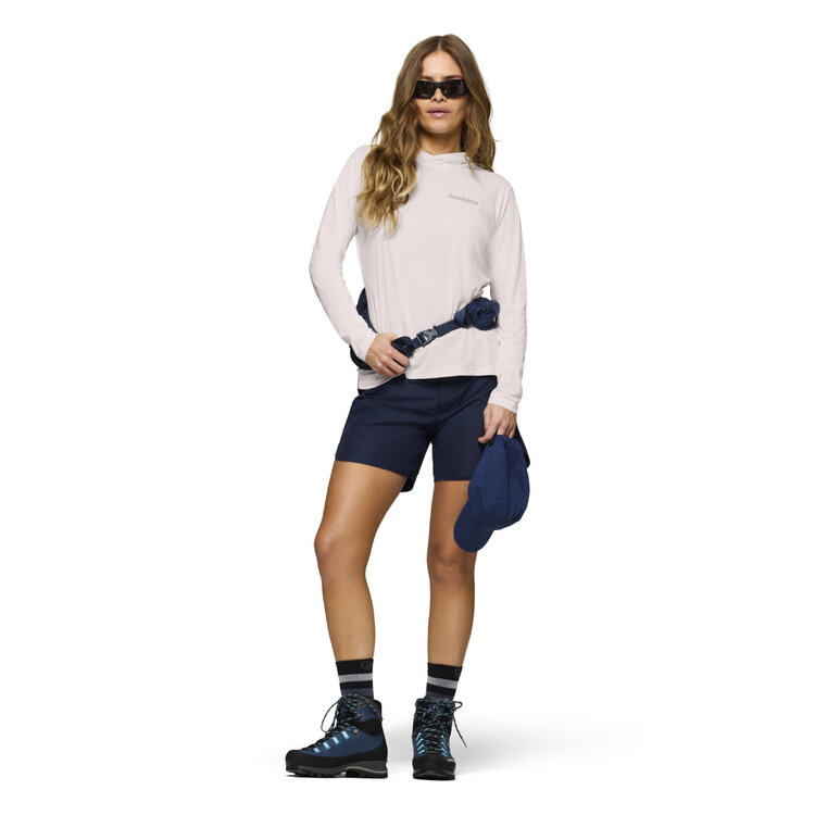 Norrøna uses a 100% recycled tech polyester fabric in this lightweight hood because it offers excellent comfort, versatility, and moisture transport.