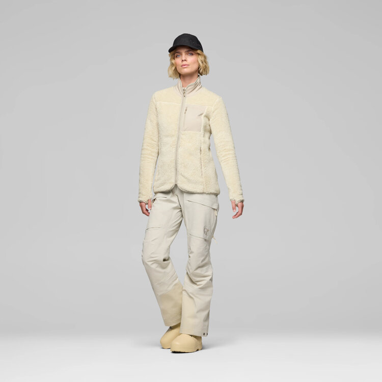 Norrøna uses their breathable and highly insulating warm3 fabric, a market-leading fleece quality for excellent warmth. This versatile recycled polyester fabric offers best-in-class warmth combined with great moisture transportation. Its unique constructions trap warm air without stopping moisture transport, and the fabrics are open enough to allow air to circulate. The outside of the collar and the external pocket has a woven, recycled face for extra wind resistance and soft fleece lining on the inside.