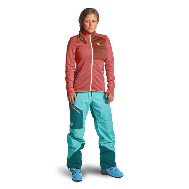 The FLEECE JACKET for women is an all-rounder with high functionality, great freedom of movement and natural climate control for cold winter days on the mountain.
