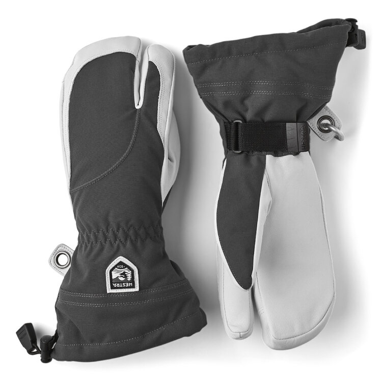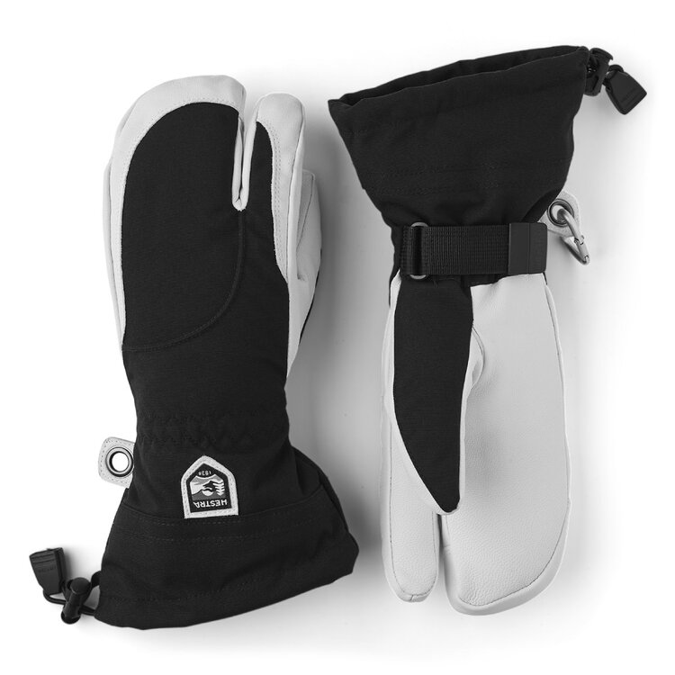 Hestra's Army Leather Heli Ski was originally created for ski guides in western Canada who needed a reliable and warm ski glove for long, cold days in the snow. This 3-finger women's glove has a narrower cut to fit women's narrower hands but is sewn in the same hardwearing, weather-resistant combination of goatskin leather and 3-layer polyamide fabric as the men's version. Like all 3-finger versions, it offers somewhat more warmth while retaining a certain amount of finger dexterity. A range of smart functions come in handy when you can't head indoors to warm up that often. For example, the liner is easy to remove and dry, or replace with a thinner inner glove when you're being more active and hiking uphill. In powder snow, the long cuff with snowlock and wrist adjustment keep the snow on the outside and the warmth on the inside. A wrist strap reduces the risk of dropping a glove if you take it off to adjust your equipment or use your phone. And the included carabiner means you can hang the glove up with its opening facing downwards – practical to avoid your gloves filling up with snow while you're wearing just a thinner liner. A durable, flexible companion for skiers that spend a lot of time outdoors and who often find themselves far from the ski resort and its comforts.