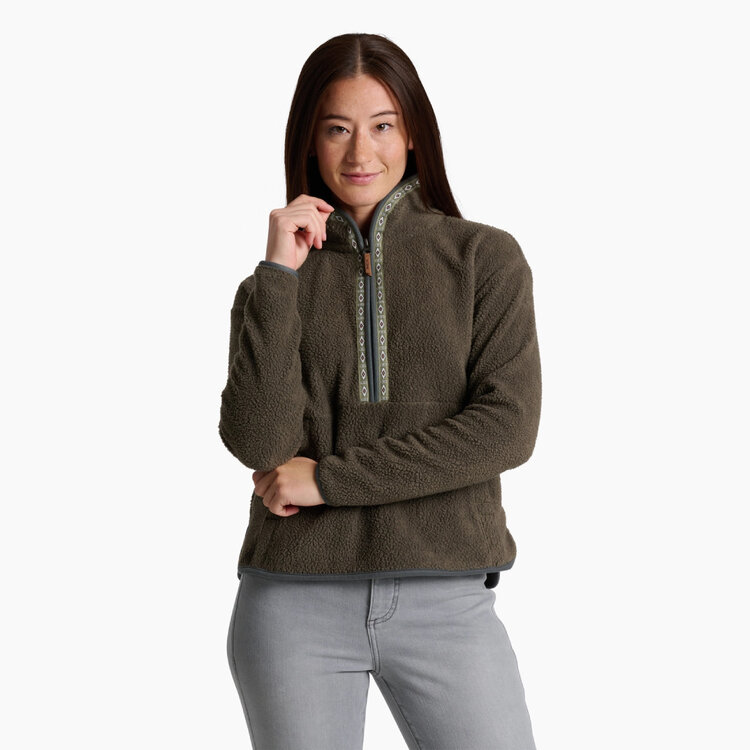 Featuring KÜHL's mélange sherpa fleece, the ultra-soft HYGGE™ ½ ZIP warms both body and soul. Heritage ribbon trim lines the zipper and neckline for an eclectic casual vibe. A modern, boxy fit with kangaroo pockets makes the HYGGE™ a versatile seasonal essential.