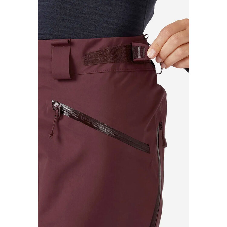 The zip and snap closure at the hem provide easy access to your ski boot buckles, and an internal gaiter seals out snow spray. On the climb up, expel heat using the large, zipped thigh vents, while the deep lined waistband keeps you comfortable throughout long mountain missions. Hook and loop waist adjustments, combined with belt loops and brace attachment points, give you the flexibility to achieve the optimal fit for tackling your next ski objective. Perfect for stashing your skins during the descent, the three external pockets include two hand pockets and a useful thigh pocket.
