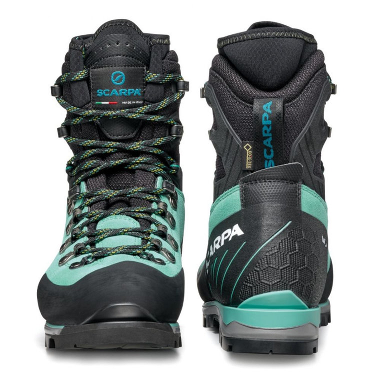 Scarpa's most versatile and durable alpine boot that combines modern features with old-school reliability, the Mont Blanc Pro GTX features a super-tough leather upper with an integrated cuff gaiter that protects and performs over snow, ice, and mixed alpine terrain.