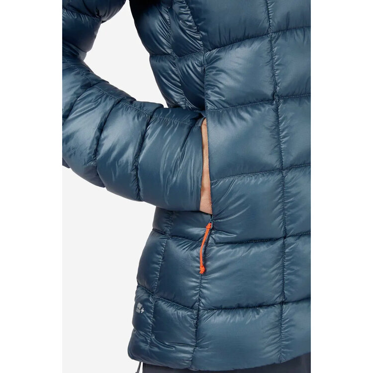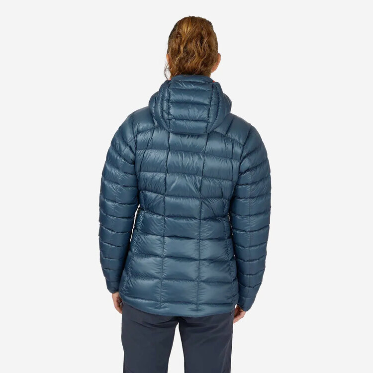 Its ultralight stitch-through construction reduces weight and bulk, while optimising breathability and freedom of movement with articulation through the sleeves. Seal out the cold on bitter summit transitions with the down-filled hood, which features a part-elasticated opening and a stiffened peak to protect you from the elements. The lightweight rear hem adjustment and part-elasticated cuffs ensure a close fit in bone-chilling winds, while two zipped pockets provide warmth for numb hands.