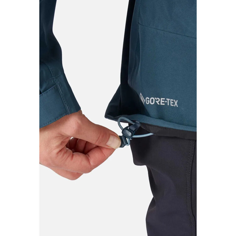 The jacket has been designed for exceptional comfort on the mountain, with underarm vents allowing you to dump heat when the gradient climbs, and a fleece-lined chin guard for when you’re sealing out the weather on a blustery ridgeline. The two-way adjustable hood can be tightened with a single hand pull, and provides an easy head turn with unhindered vision. It also features a stiffened peak, helping to shield your face from rain. The hook and loop adjustable cuffs fit seamlessly with gloves, and there are two hand pockets for warming numb fingers on the coldest days.