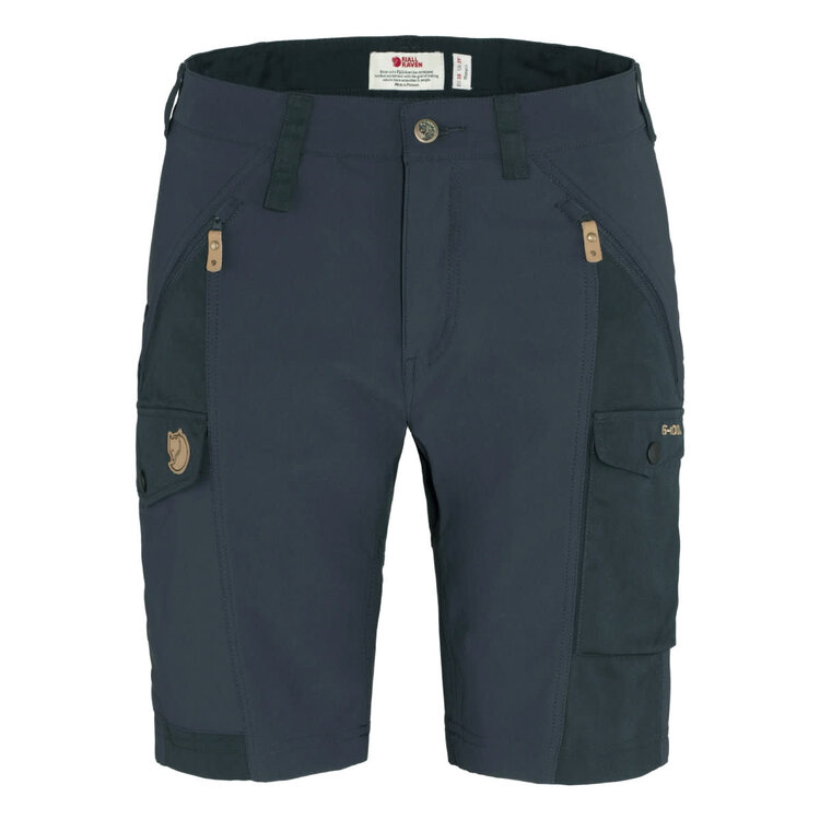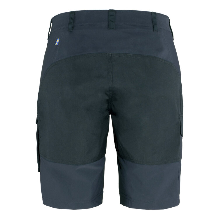 High-performance trekking shorts made from stretch fabric and G-1000 for excellent freedom of movement and durability. This model with Curved Fit has a little extra width over the hips and thighs, and a slightly more accentuated waist that other models. This gives a more comfortable pair of shorts that sit better on a curvy figure, without being tight, bunching or having a gap at the back of the waist. The waist is cut lower at the front and higher at the back so they sit well under a backpack and when you are active. Stretch fabric at the lower back and G-1000 reinforcements over the rear. Hand pockets with zippers are positioned so they are accessible even when carrying a backpack with a hipbelt. There is a large leg pocket with a flap and a smaller inner pocket in mesh on the right leg, plus a smaller leg pocket for a mobile phone or GPS on the left leg. A loop at the waist can be used to attach a knife, camera or any other smaller piece of equipment wanted close at hand.