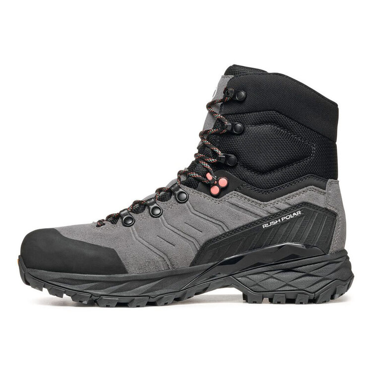 When the temperatures drop, the Rush Polar GTX steps it up to keep you comfortable in the snow and cold. An extended ankle collar height, and a suede upper backed by GORE-TEX? Insulated Comfort technology and Primaloft? Gold Eco insulation ensure your feet stay toasty warm on winter hikes or snowshoeing trips. Underfoot support, protection and traction come courtesy of the exclusive PRESA? outsole with Interactive Kinetic System (IKS) Technology. The IKS system features impact absorbing internal domes placed in key ground contact areas that function as mechanical shock absorbers, while our H-compound rubber provides secure grip at low temperatures. The Dynamic Stabilizer Torsion frame supports the arch and wraps the heel on both sides, providing terrific rearfoot stability and torsion control so you can confidently tackle whatever winter mission you have in mind.