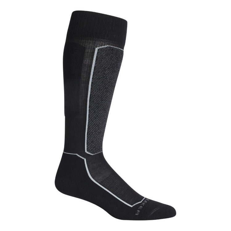 Stretchy and supportive merino socks for technical performance on snow, Icebreaker's strategically cushioned Ski+ Light Over the Calf socks are durable, breathable, and comfortable, with anatomical support in key areas.