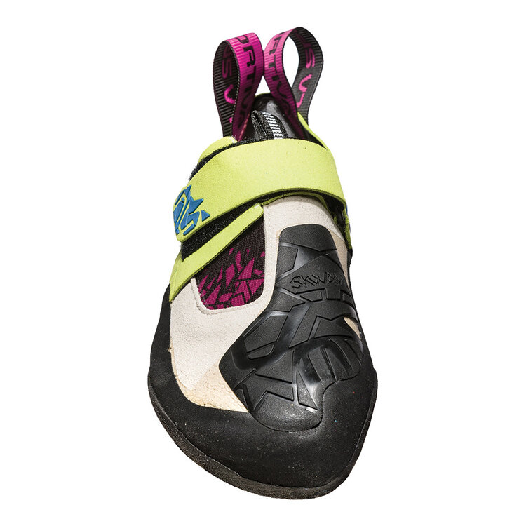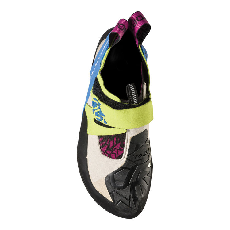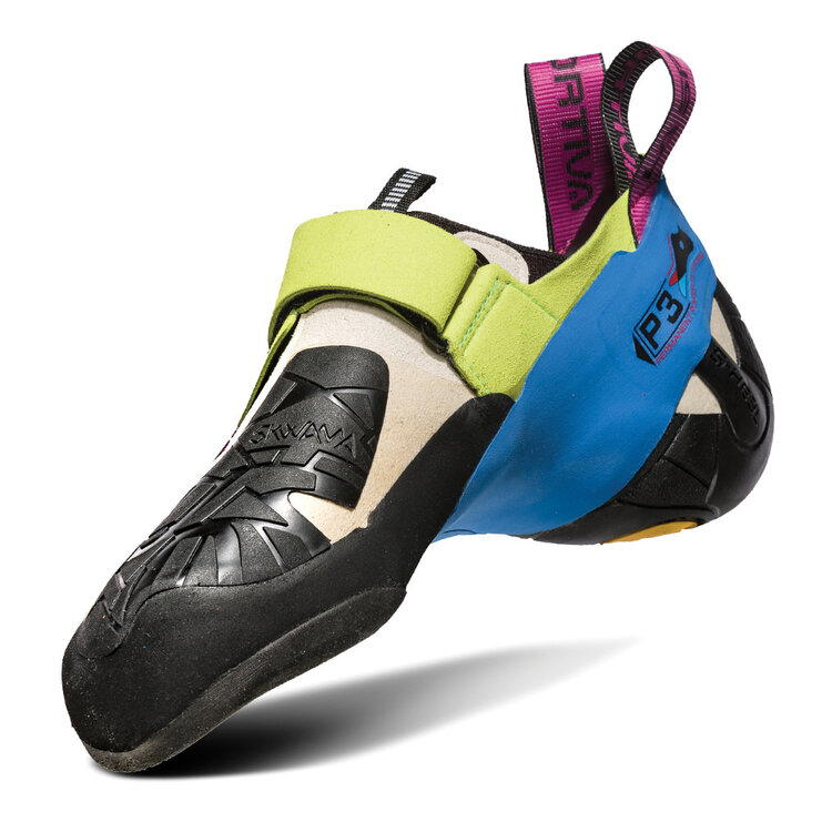 The comfort of a slipper coupled with the snug fit of a hook and loop closure, the Skwama Women's promises precision and performance. Stand-out features like the P3® rand design to minimize stretch, S-Heel™ construction for secure heel hooks, and extra rubber over the top forefoot for toe hooks and scumming make this elite-level shoe built to deliver exacting control on the most technical routes and boulder problems.