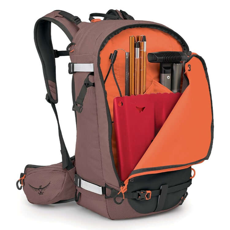 - SNOW-SPECIFIC FEATURES: Equipped with a snow-shed backpanel, diagonal and A-frame ski carry, snowboard carry, ice tool attachment and intuitive access to safety avalanche gear.