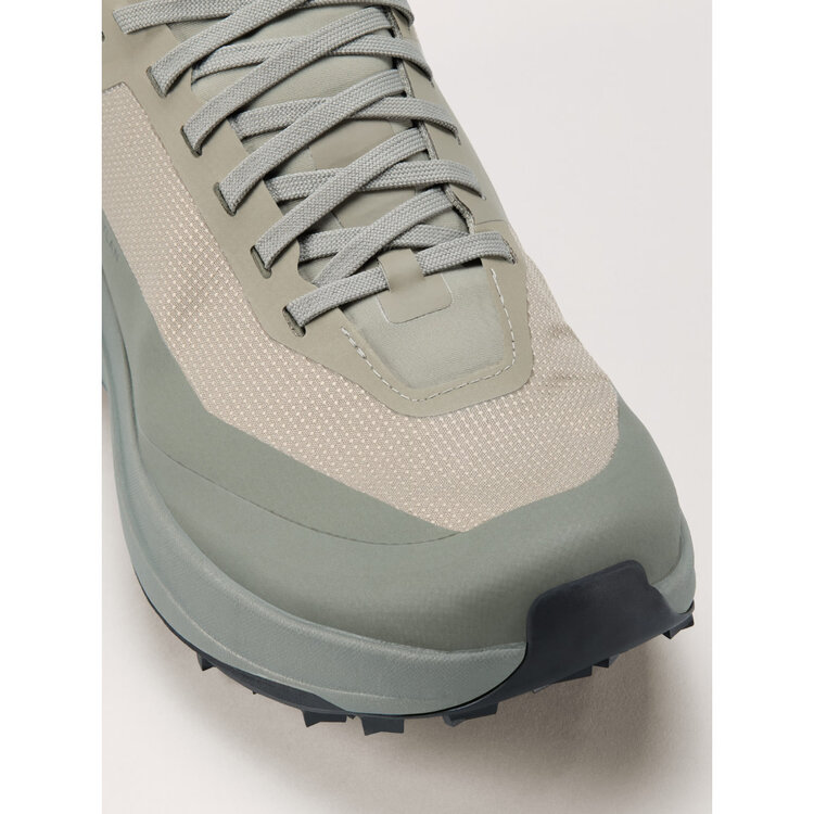 This is the GORE-TEX shoe for mountain runners looking to move faster on technical trails – no matter the conditions. The midsole’s rocker geometry drives propulsion and is made from InFuse, a light, highly responsive EVA and Polyolefin composition that provides rebound and absorbs shock. The grippy Vibram Megagrip outsole uses LITEBASE technology to shed weight without sacrificing performance, and aggressive lugs deliver a confident bite. The fit locks tight, and a knit collar seals out debris.