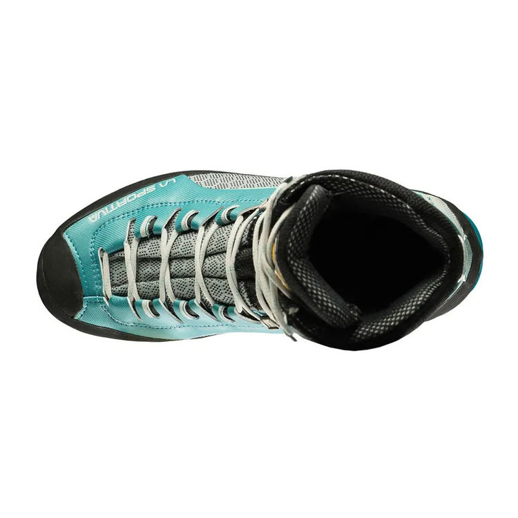 The uppers are made with the exclusive high tenacity fabric with differentiated abrasion resistant zones and Honey-Comb Guard™ reinforcements positioned in the areas most subject to abrasion. The aesthetic Trango line with seams minimized achieves the reduction of weight, also contributing to this is the Vibram sole with the exclusive La Sportiva Cube design with lightened thicknesses. The Gore-Tex Performance Comfort membrane guarantees water resistance and breathability. The 3D-Flex System allows for better control on holds. The differentiated lacing system between the upper and the lower part of the boot allows for perfect adjustment of volume for optimal wearing comfort. The Trango series is enriched with increasingly technical and aesthetic contents in advance of its time.