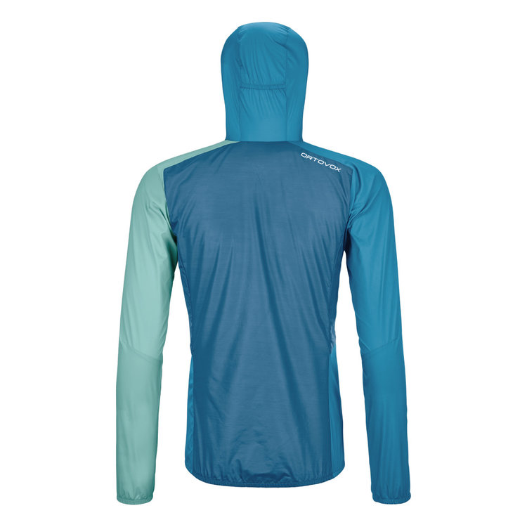 Windproof, light as a feather, can be packed up small and with all the benefits of the finest merino wool: With the WINDBREAKER JACKET for women even the strongest summit wind cannot blow you off course, whether you are mountaineering or climbing. The new generation of WINDBREAKERS not only offers an ergonomic fit, but also contain MERINO PROTECT – in the front, on the back and under the arms. The fine merino fibers of this breathable, moisture-regulating and windproof material noticeably optimize the body climate. The sleeves, sides and hood of the jacket are made from super lightweight, windproof TEC STRETCH material, which perfectly mirrors your every movement. A PFC-free, water-resistant DWR coating protects against light drizzle. True minimalists wish to reduce weight but not function – that’s why Ortovox's hoods, elastic cuffs and waistbands are all pre-adjusted. The jacket can be fully packed away into its practical breast pocket with an extra loop, and then attached to a belt, belt loop or backpack. The MERINO WINDBREAKER JACKET for women is the perfect companion for true minimalists who want reduced weight and maximum function. It is a reliable, protective allrounder and light enough to carry with you wherever, whenever.