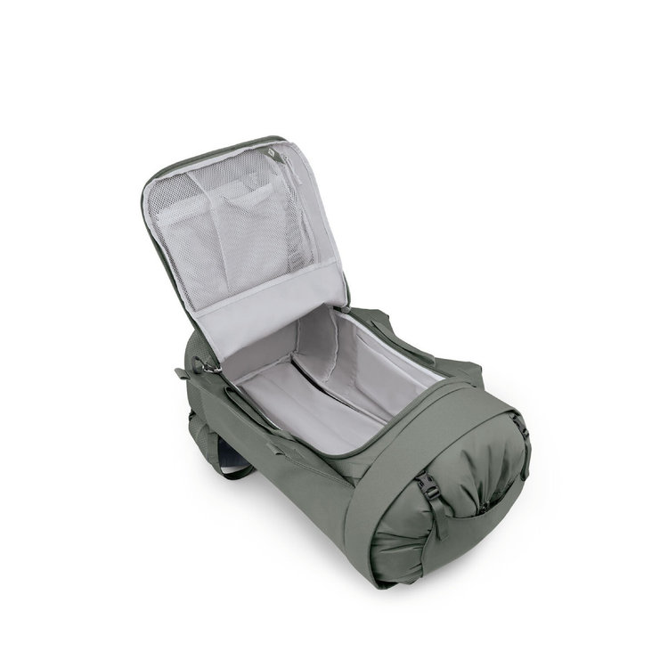 - Duffel-like front panel main compartment access, with zip mesh pocket organization